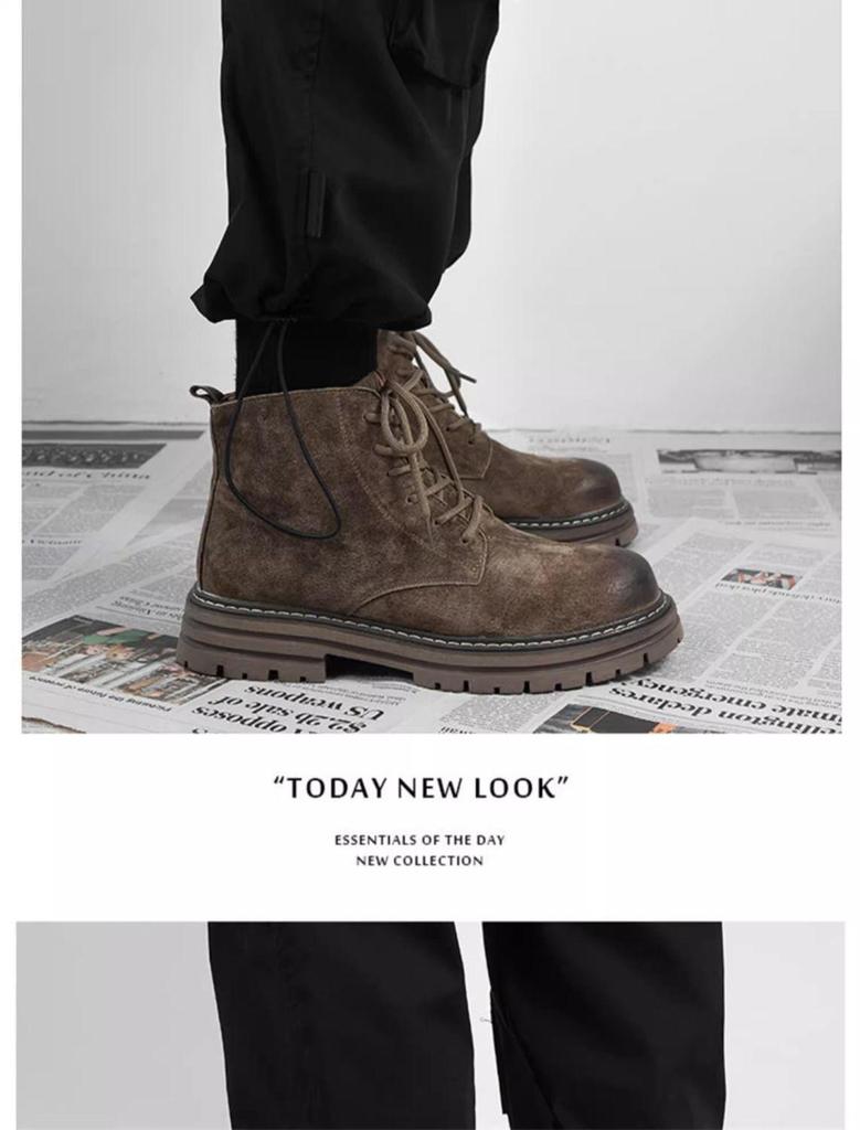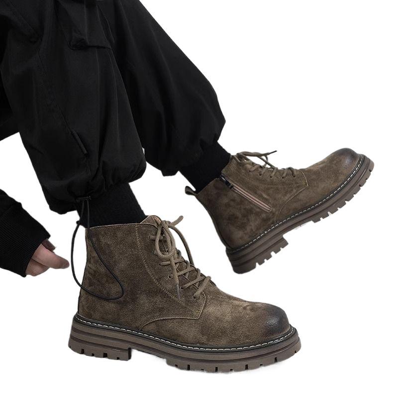 Мужские ботинки Мартин с низким и средним голенищем 2024 года: Высокие кроссовки на толстой подошве, увеличивающие рост, песочно-желтого цвета