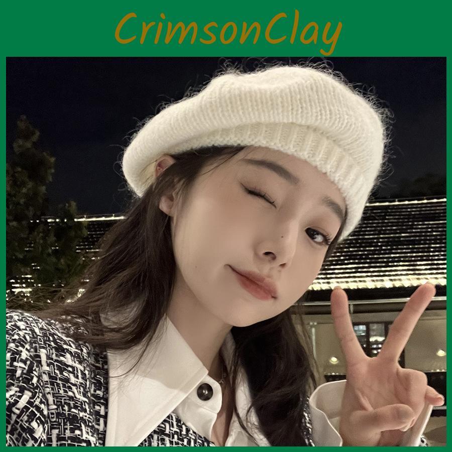 Стильный вязаный мохеровый берет для женщин, теплая и пушистая шапка художника в нескольких цветах