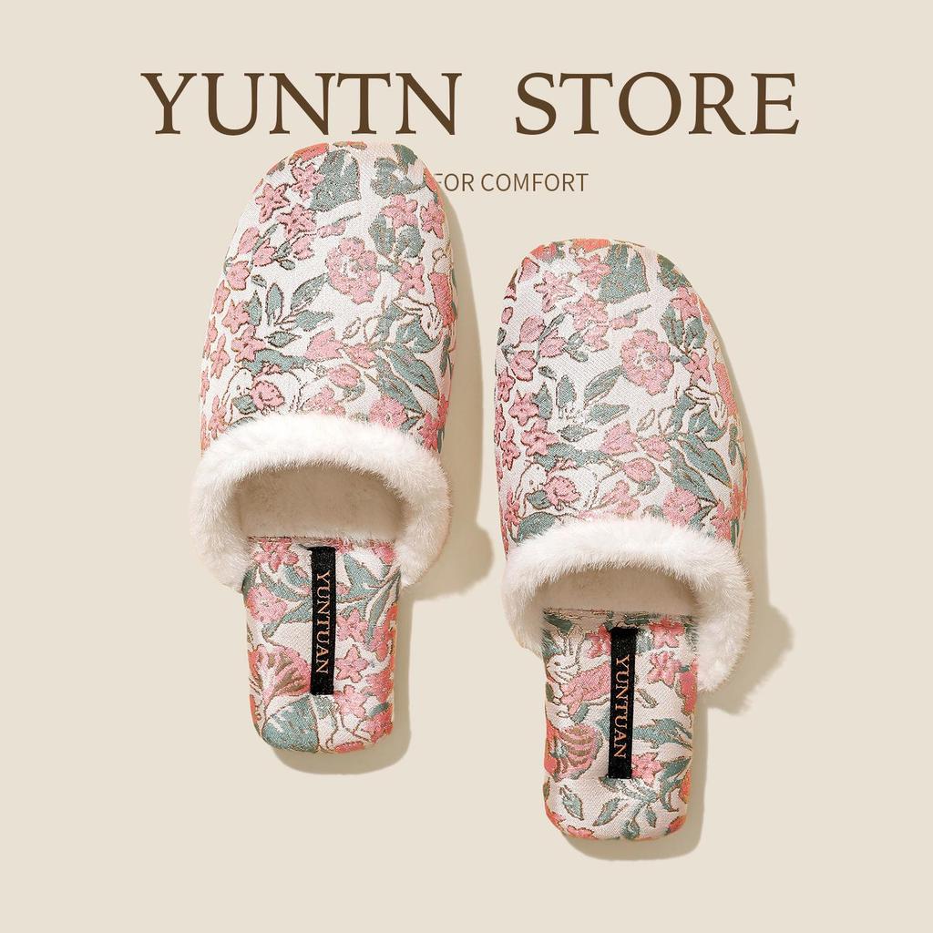 Женские флисовые тапочки с цветочным жаккардовым узором в китайском стиле, нескользящие, теплые, хлопковые, для осени и зимы — купить товар онлайн с бесплатной доставкой по всему миру!