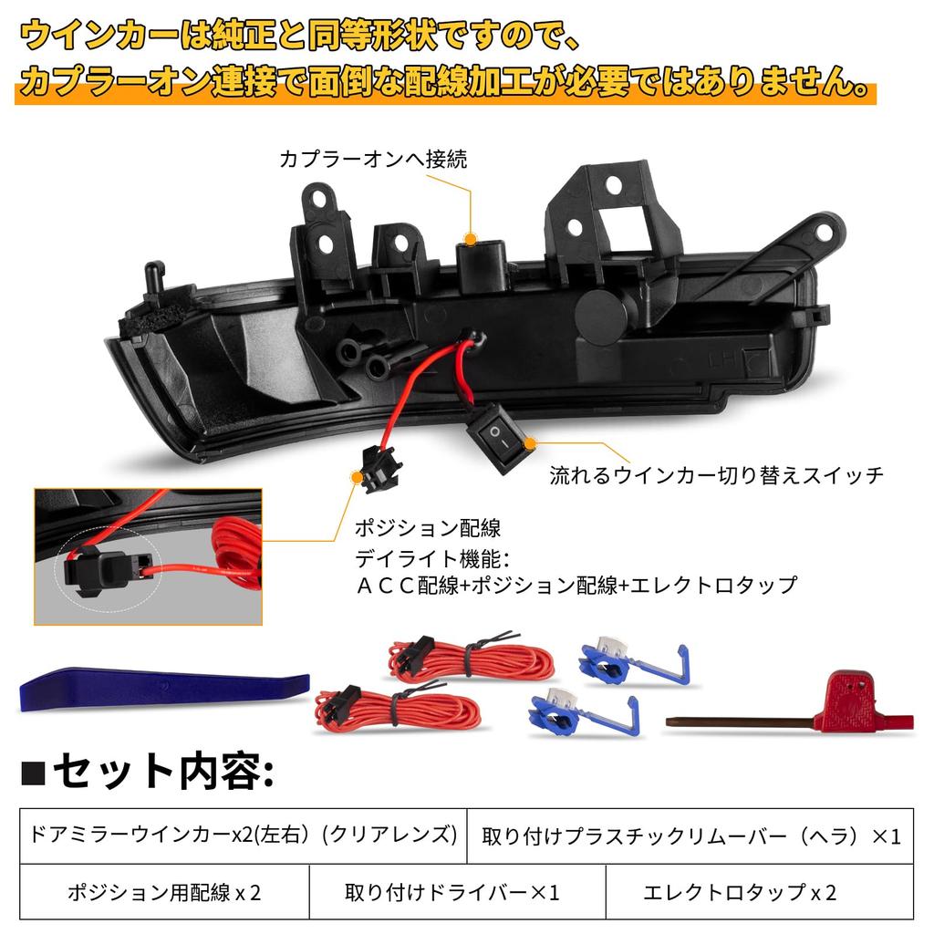 🚗 [Оригинальная замена, инструменты в комплекте] Динамические указатели поворота боковых зеркал, совместимые с Prius 30 Series G's, просты в установке, включают инструменты для снятия внутренней отделки, а проводка подключается по принципу plug-and-play, как и в оригинале, что исключает необходимость в сложных модификациях проводки. Просто замените оригинальные линзы поворотников зеркал для простой установки.. ┏●Примечание: На этот продукт не распространяется гарантия от царапин или повреждений.. уведомление: *Для использования функции положения требуются модификации проводки, такие как втягивание. ◆ Дневные ходовые огни → Подключить к проводу ACC + ◆ Положение (габариты) → Подключить к проводу положения +
