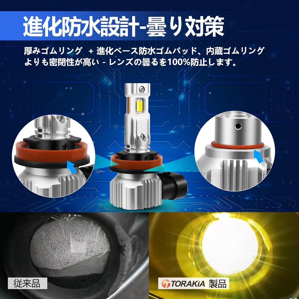 [Dual-Color Memory Function] TORAKIA H11 LED fog lights are equipped with a memory function that automatically memorizes your preferred white/yellow setting. If the color is incorrect, you can reset both colors to synchronize them. With a white setting that meets vehicle inspection standards and a 3000K yellow setting that's perfect for foggy and rainy days, you can drive safely!
