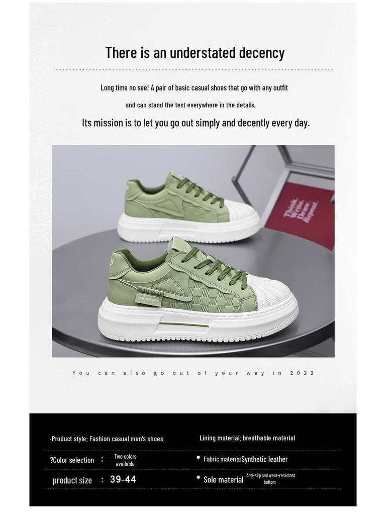 Мужские летние дышащие белые кроссовки: Трендовые, Универсальные, Толстоподошвенные, Повседневные кеды для скейтбординга с мыском-ракушкой