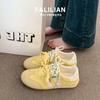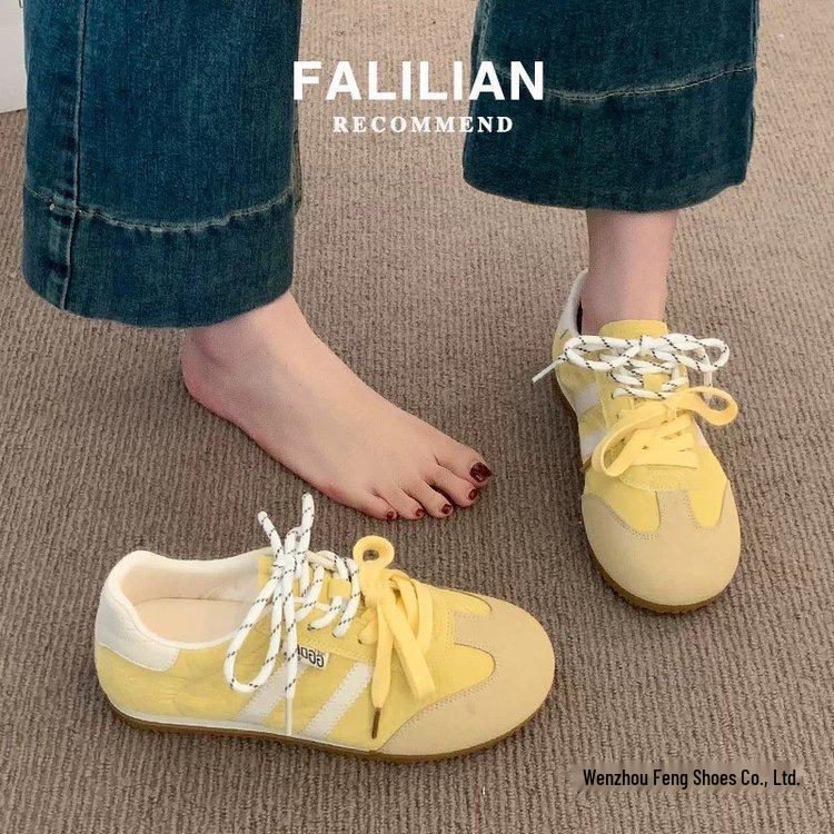 Женские желтые кожаные немецкие кроссовки: Новый весенний стиль 2025, Легкие, Универсальные, Тонкая подошва, Повседневная спортивная обувь для скейтбординга.