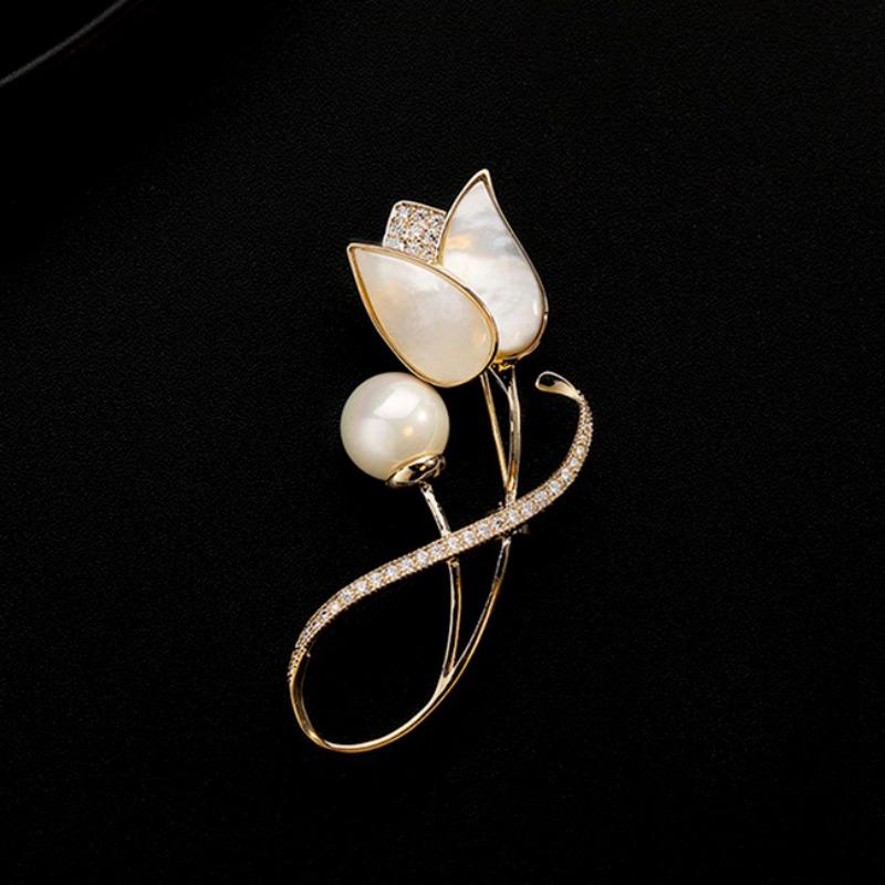 Брошь-тюльпан, Элегантный женственный шарм, Жемчужная брошь, Корейская модная брошь-цветок, Аксессуар для пиджака