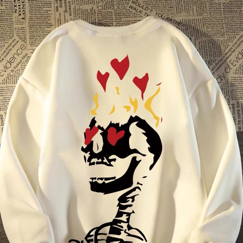 Американский Ретро Креативный Любовь Череп Мужской Свитшот с Круглым Вырезом Осень Зима Модный Бренд Темная Ленивая Куртка