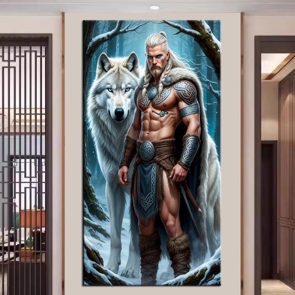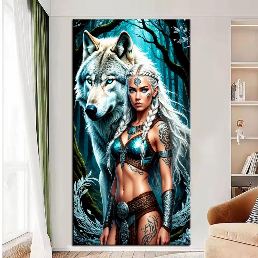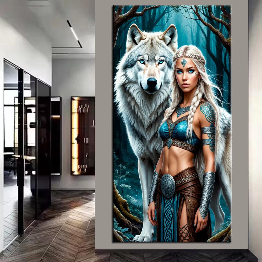 Большой размер Мозаика Сделай сам Полные наборы для рисования бриллиантами Искусство Воин и Волк Вышивка Крестом Стразы