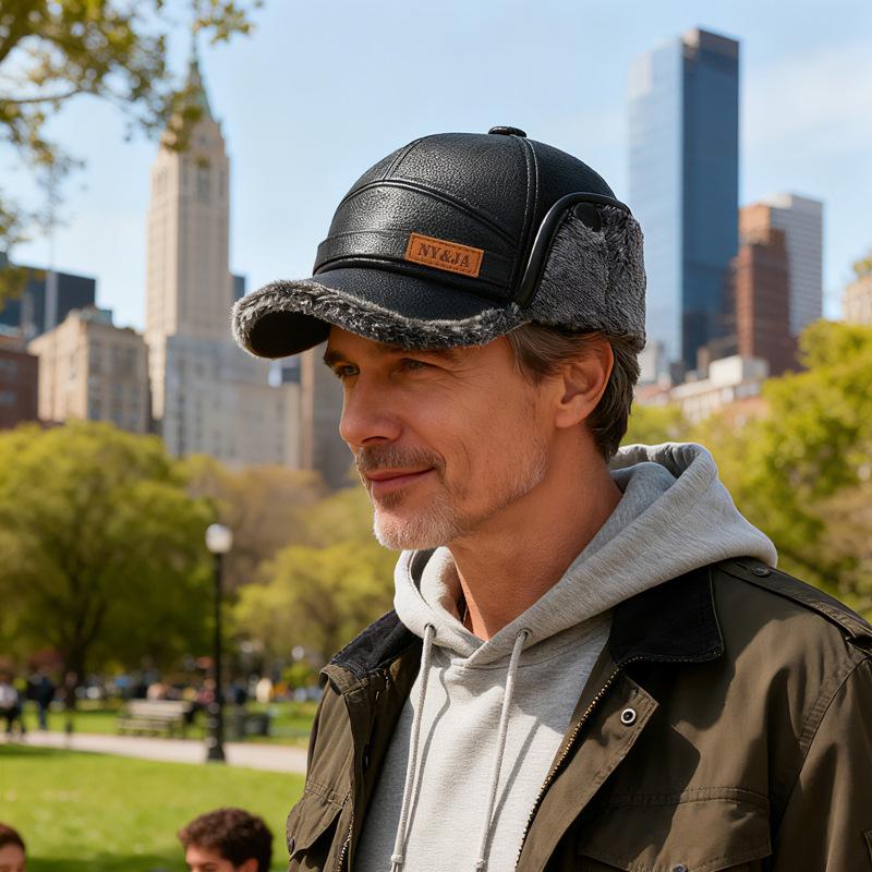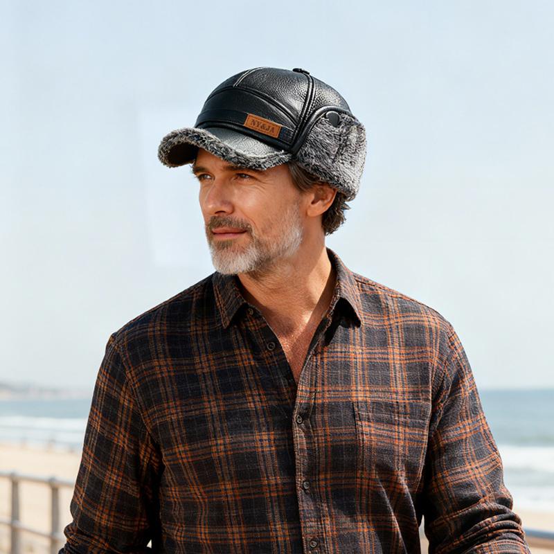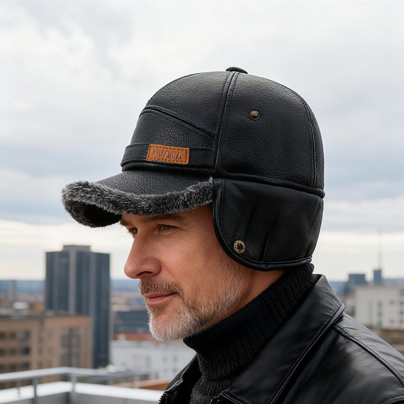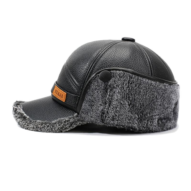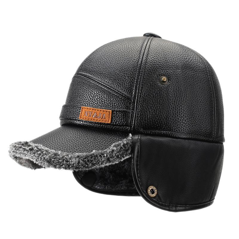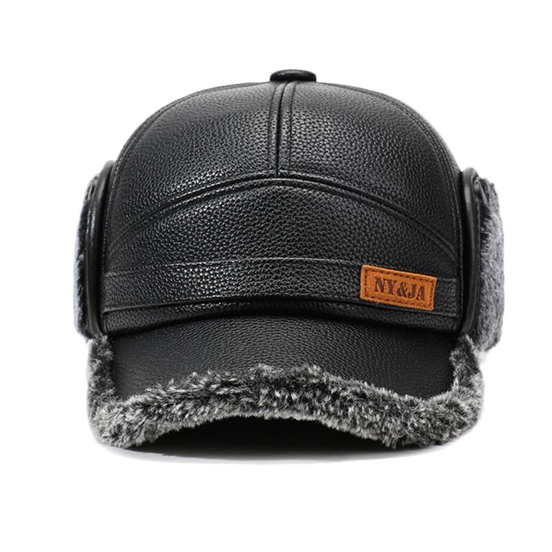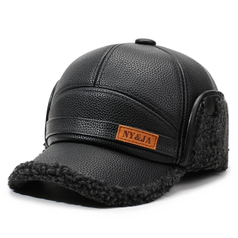 Мужская осенне-зимняя теплая толстая кожаная шапка с защитой ушей, хлопковая шапка для среднего и пожилого возраста, папина шапка, шапка для защиты от холода