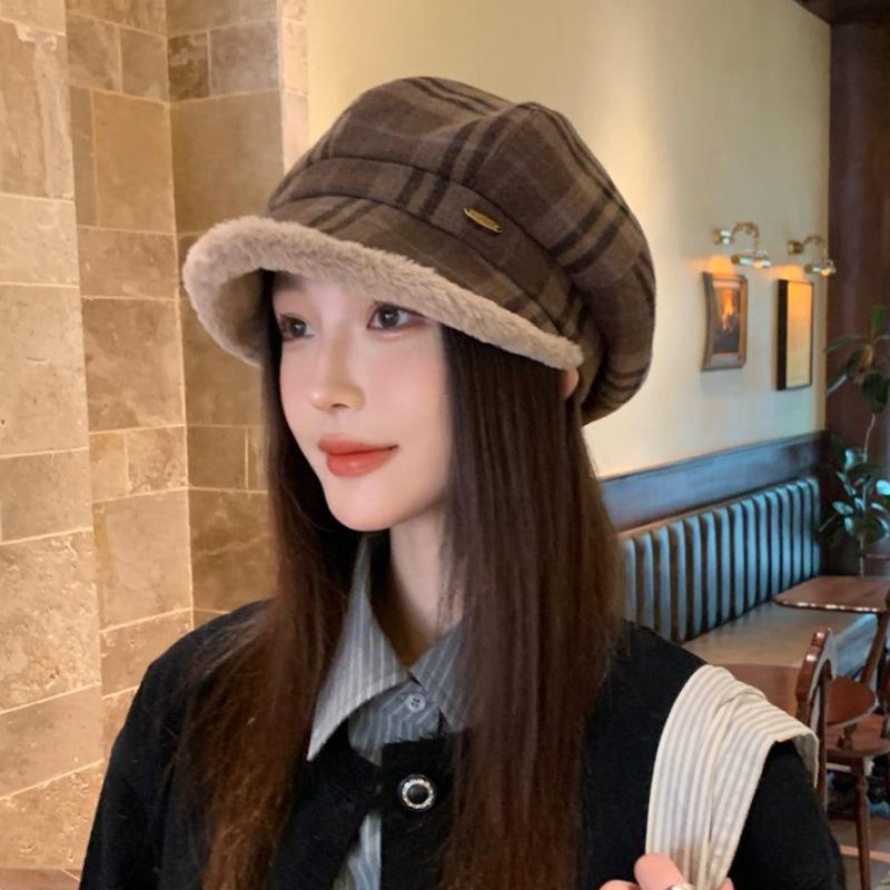 A Plush Fisherman Hat for Women A Versatile and Artistic Autumn and Winter Basin Hat A Warm Ear Protecting and Face-enhancing Small Octagonal Hat