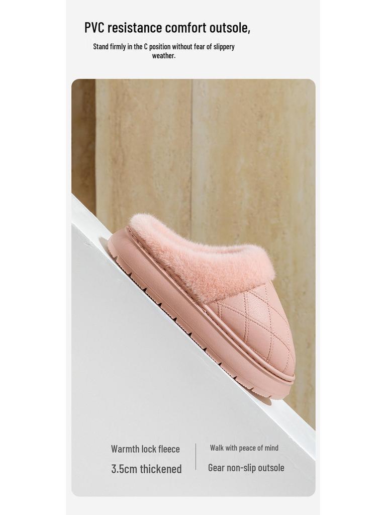 Женские водонепроницаемые хлопковые тапочки - Осень/Зима 2025, на вельветовой подкладке, теплые, толстая подошва, для домашнего/уличного использования