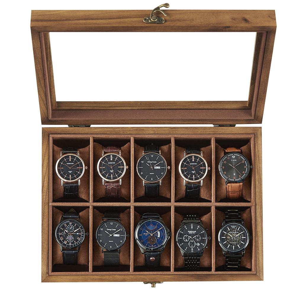 SONGMICS Чехол для часов на 10 деревянный кейс для коллекции часов с прозрачным окошком, аксессуар для часов, день, день рождения, праздник JOW100K01 Часы, Хранение, Окошко,