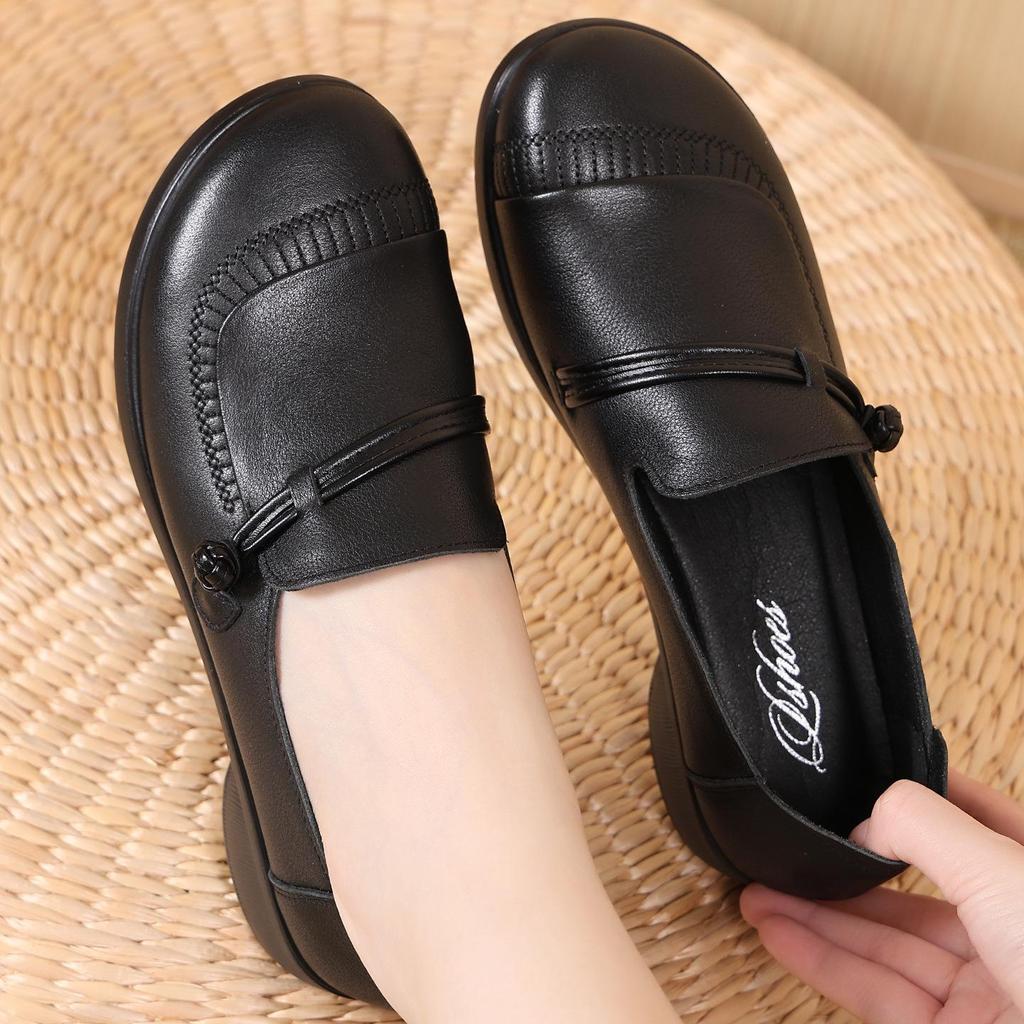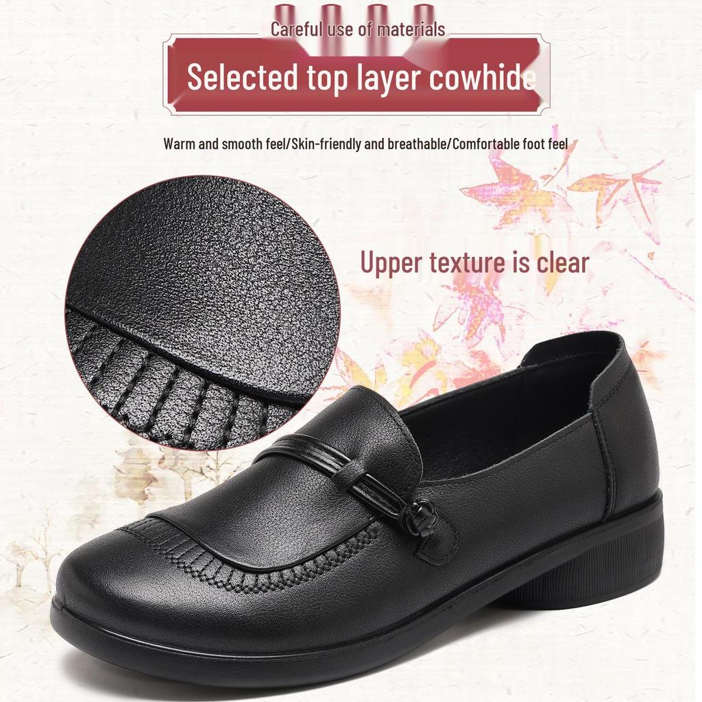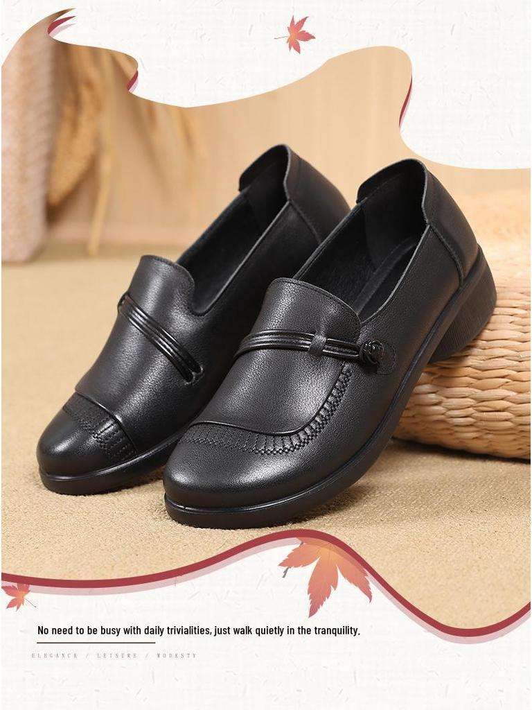 Туфли-слипоны из натуральной кожи с мягкой подошвой для мам - Нескользящие, Удобные, С круглым носком, Большого размера для осени