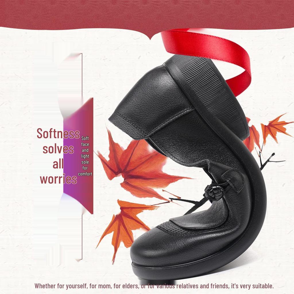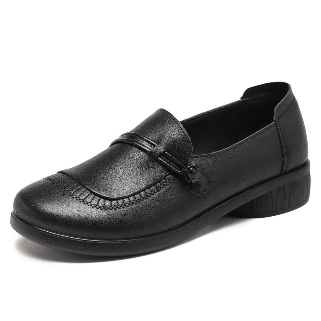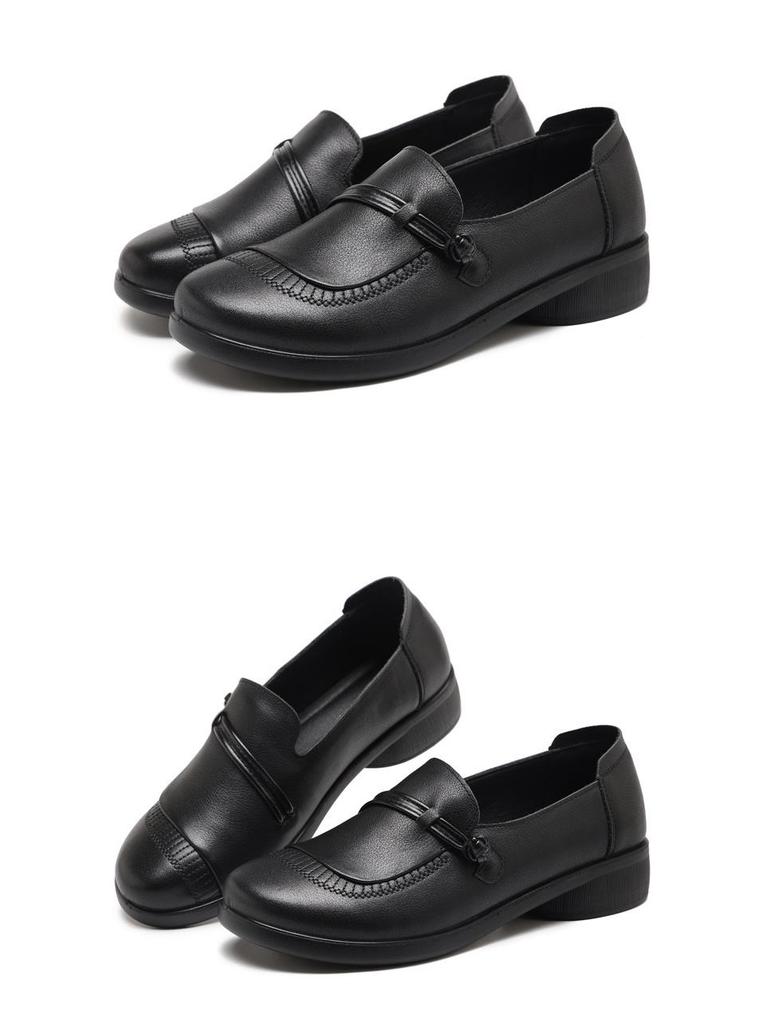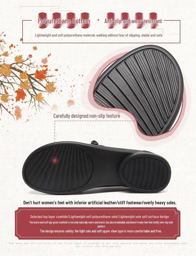 Туфли-слипоны из натуральной кожи с мягкой подошвой для мам - Нескользящие, Удобные, С круглым носком, Большого размера для осени