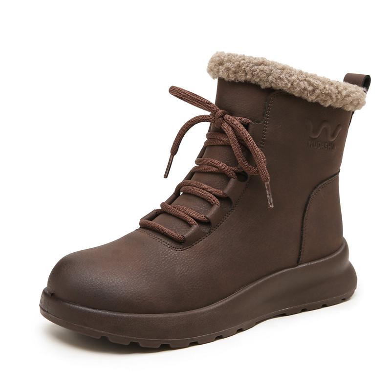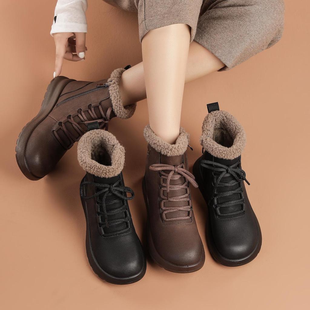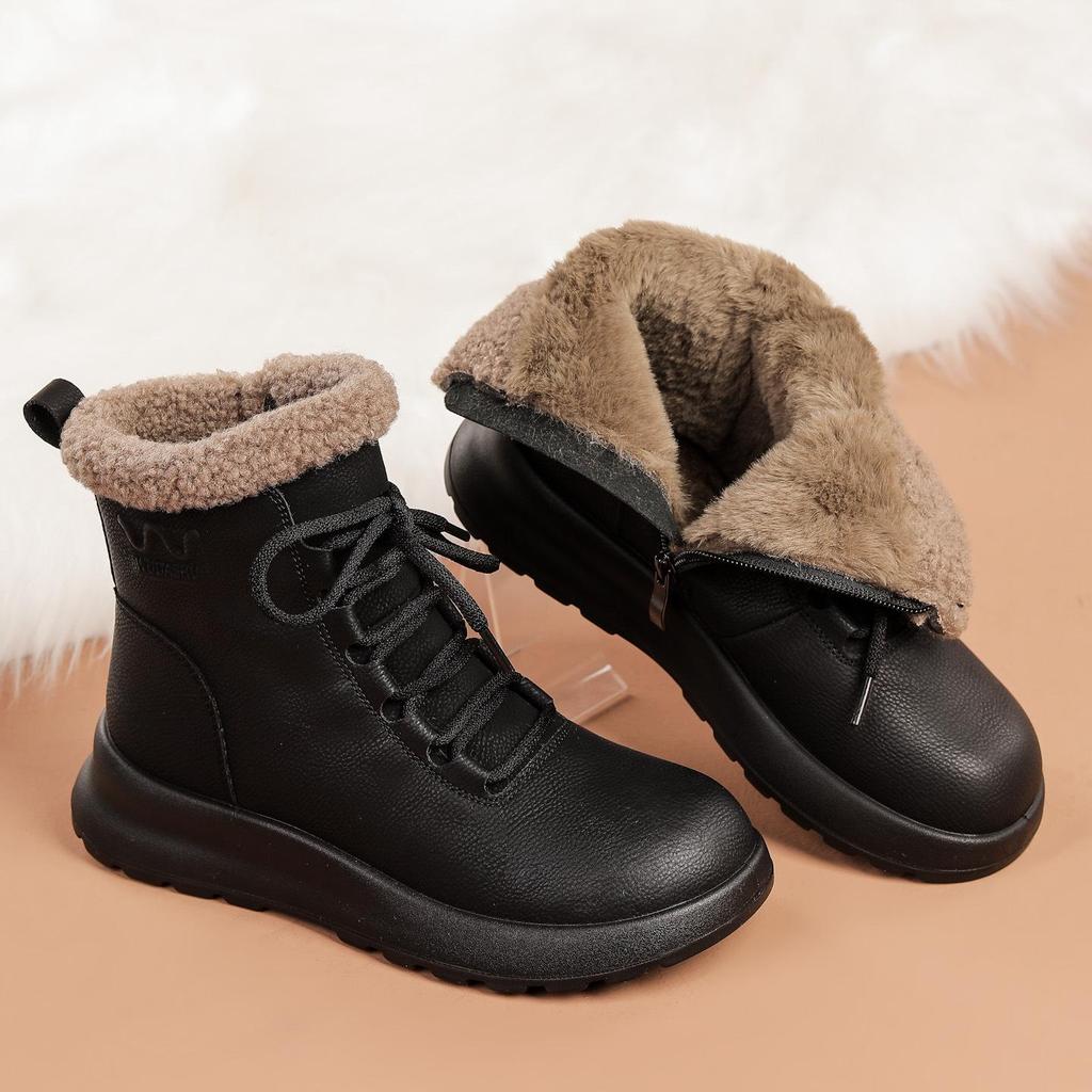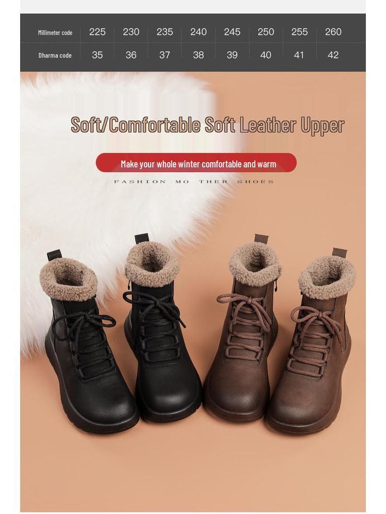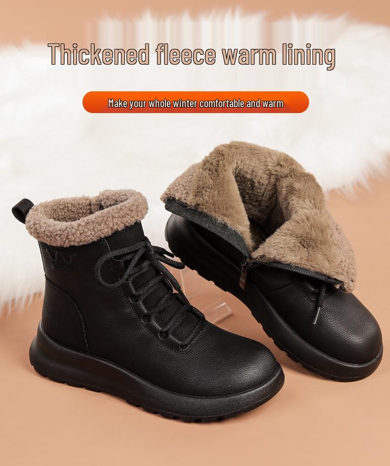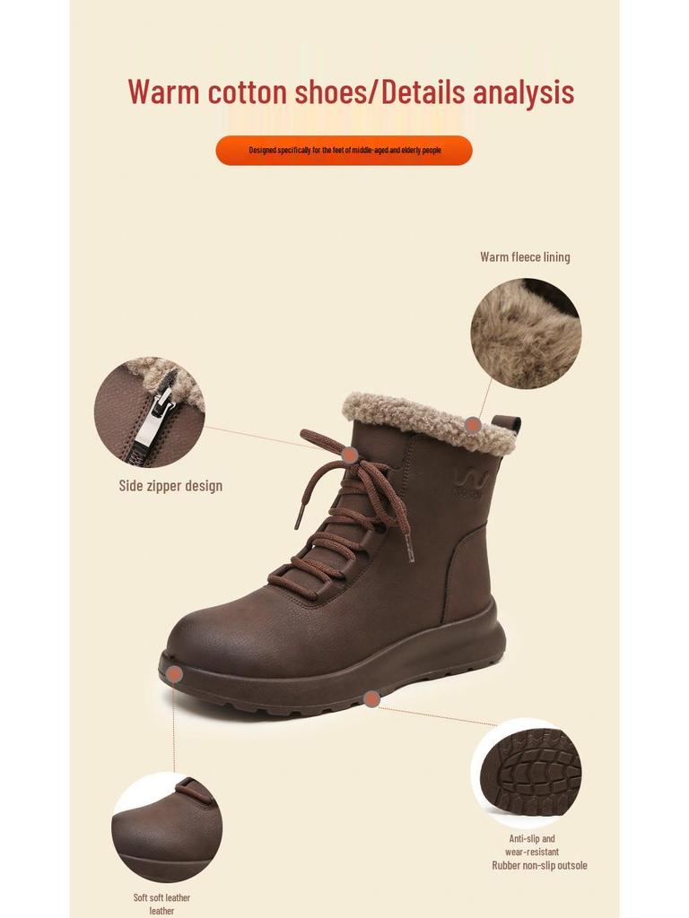 Женские зимние ботинки из натуральной кожи с нескользящей подошвой - Теплая, стильная хлопковая обувь для женщин среднего и пожилого возраста