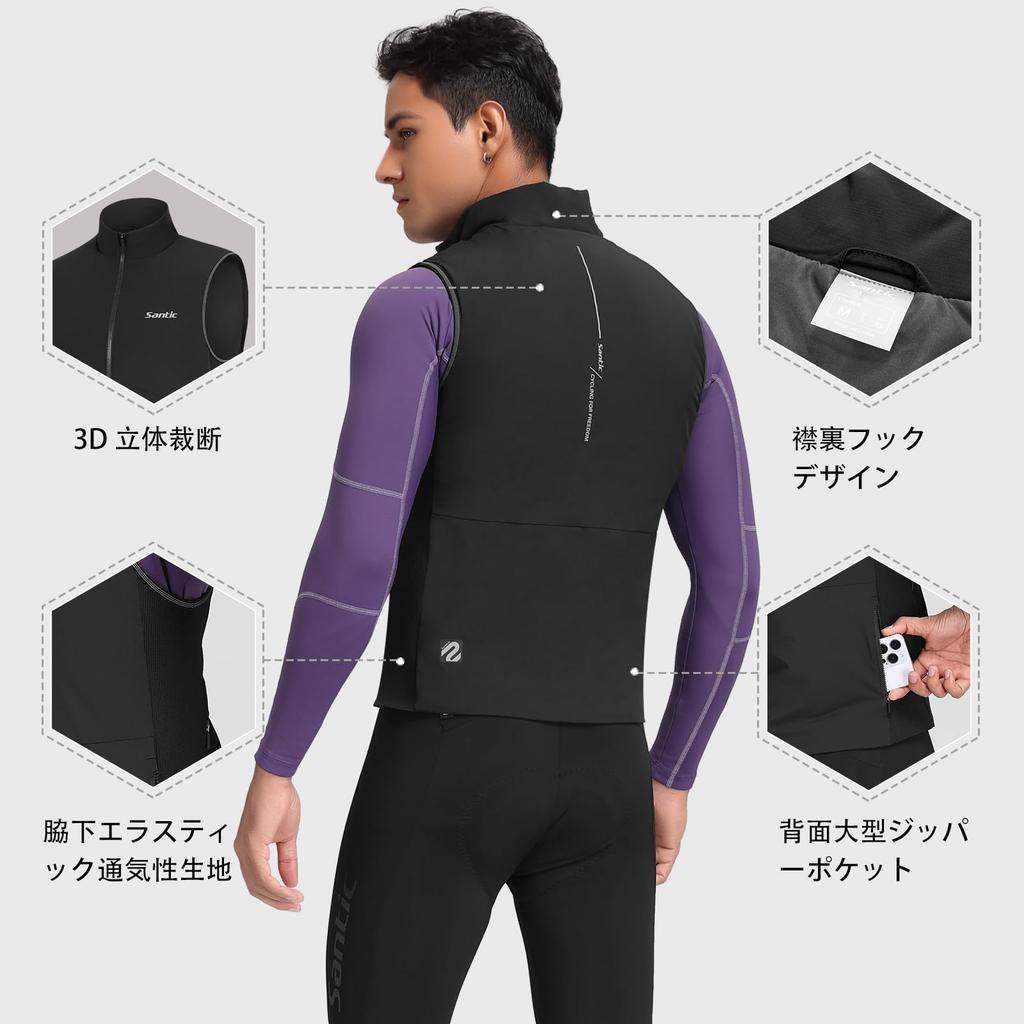 Santic Men's Reflective Fleece Cycling Jersey, Sleeveless, Windproof and Warm, Perfect for Fall and Winter, Size L