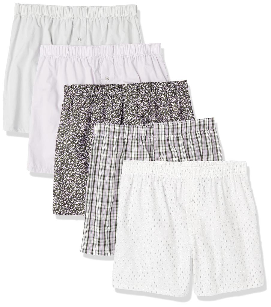 Amazon Essentials Мужские тканые хлопковые боксеры-брифы/трусы, 5 штук, Arrow Geo/Оливковый, Мелкий цветочный/Клетчатый, Ярко-белый, Белый, XS