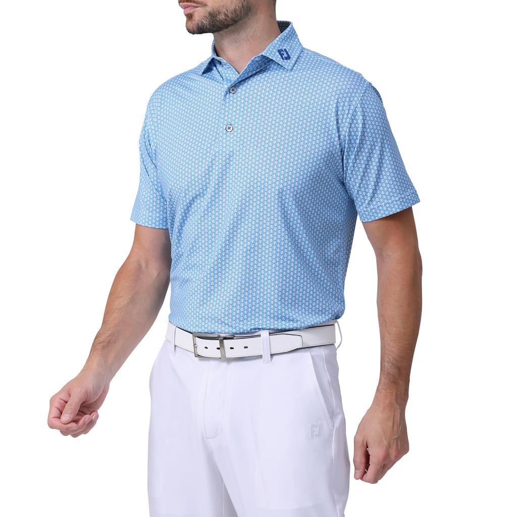 Мужская рубашка FootJoy с коротким рукавом и широким воротником, с принтом в виде ракушек, цвет «Голубое небо», размер S. (FJ-S24-S15, 81751-S)