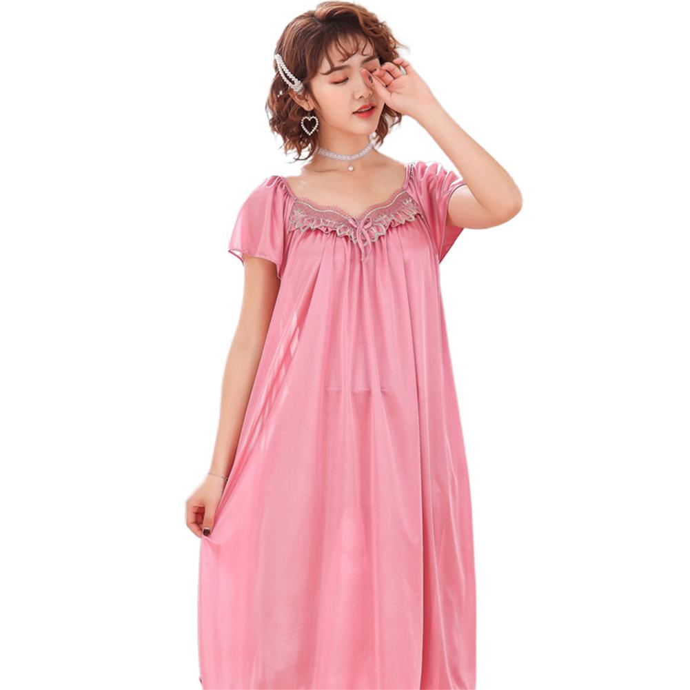 Женская свободная ночная рубашка с коротким рукавом, кружевная лоскутная ночная рубашка с коротким рукавом, пижама