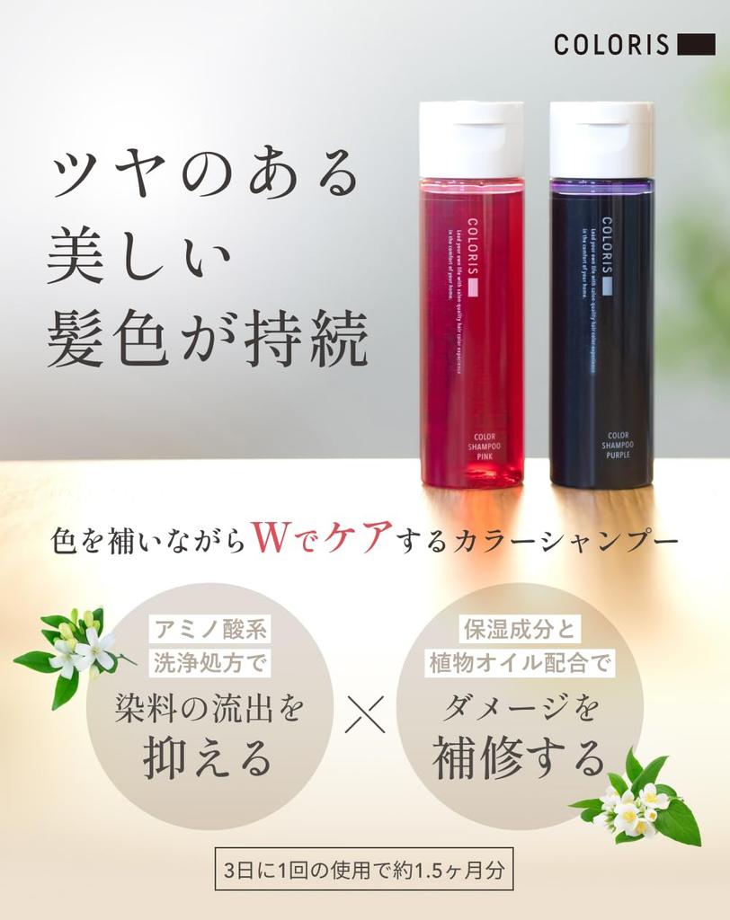У вас возникают такие проблемы, как жесткие волосы, трудности с поглощением цвета, плохое пенообразование или сильный запах при использовании цветного шампуня? Шампунь для окрашенных волос COLORIS — это ответ. Обычные цветные шампуни содержат поверхностно-активные вещества и обладают сильным очищающим действием, что может привести к вымыванию цвета.. Сильная очищающая способность также может повредить волосы. Цветной шампунь COLORIS мягко очищает с помощью очищающего средства на основе аминокислот, предотвращая вымывание красителя и восполняя любые недостатки, что облегчает поддержание цвета.
