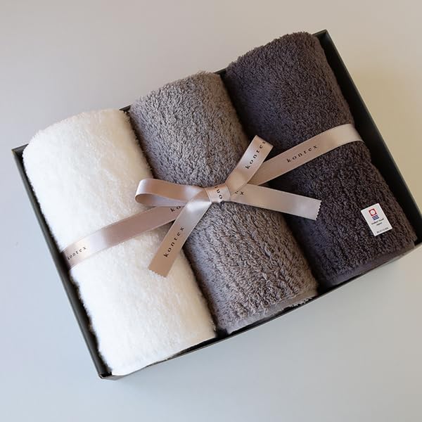 Contex Premium Face Towels (3-Piece Gift Set) in a Gift Box. Imabari Towels, 100% Cotton, Absorbent, Quick-Drying (Ivory, Gray, Charcoal Gray)