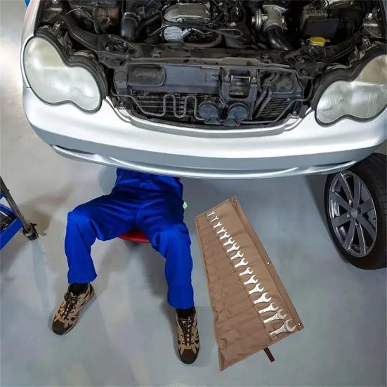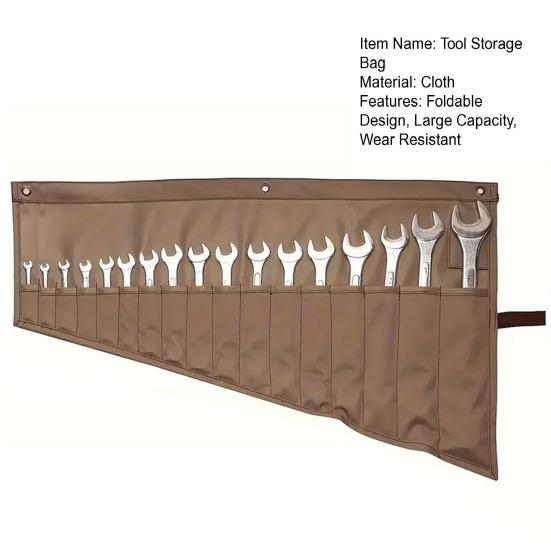 Легкая сумка для гаечных ключей является портативной и имеет 16 карманов для надежного хранения гаечных ключей различных размеров, обеспечивая аккуратную организацию.. Эта сумка, выполненная с изысканным мастерством и плотными швами, прочна и долговечна, выдерживает частое использование.