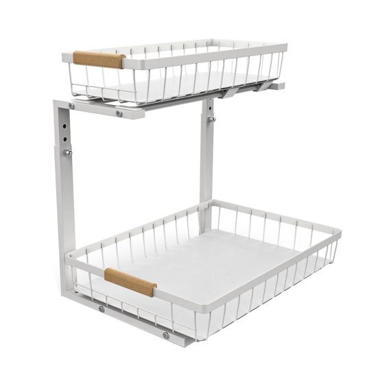 Изготовленная из прочной углеродистой стали, наша стойка для хранения под раковиной обеспечивает надежную устойчивость.. Несущие верхние и нижние полки в сочетании с независимой конструкцией направляющих гарантируют плавное скольжение для удобного извлечения предметов.