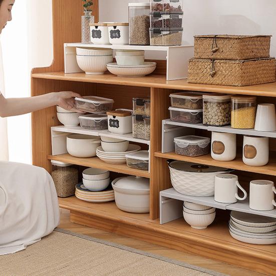 Универсальное решение для хранения данных: От шкафов до кладовых, от кухонь до ванных комнат — эта функциональная полка для шкафов легко адаптируется к различным домашним условиям.. Идеально подходит для организации тарелок, чашек, столовых приборов, кастрюль, закусок, книг и многого другого, предлагая универсальные варианты хранения, адаптированные под ваше пространство.