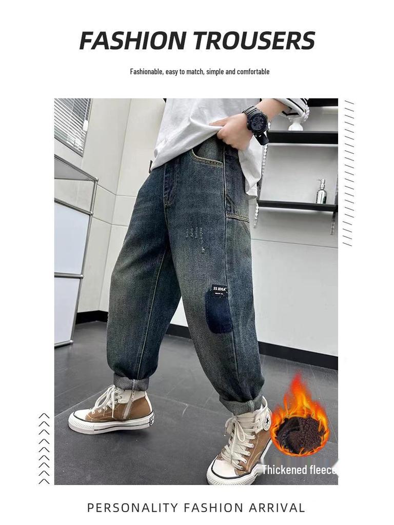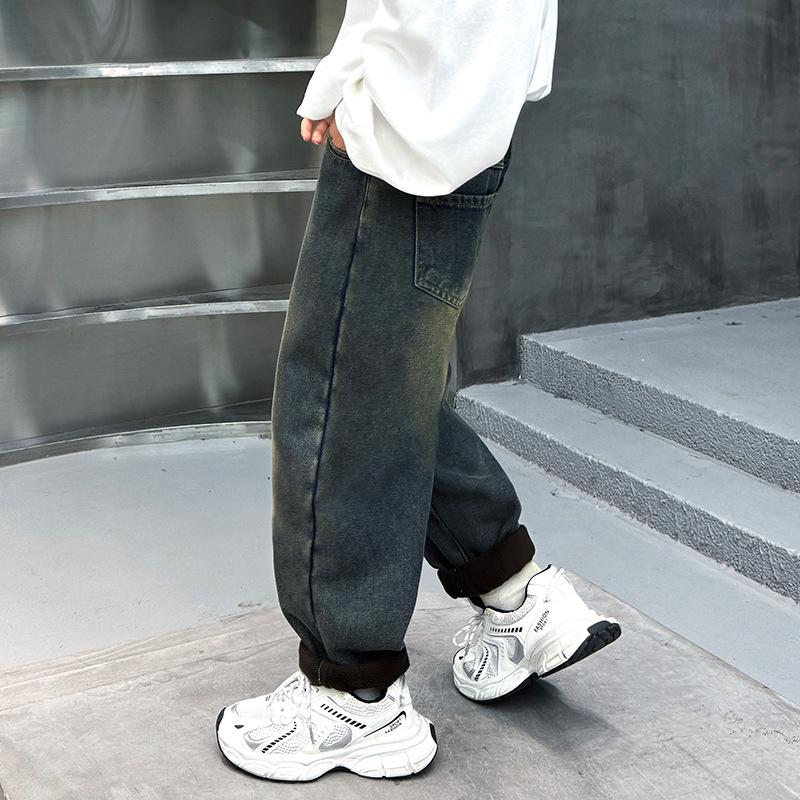 Обновите гардероб вашего ребенка этими стильными джинсами на флисовой подкладке из коллекции 2025 года. Эти длинные брюки, изготовленные из высококачественного хлопка, созданы для больших детей, которые любят придерживаться модного уличного стиля.. Благодаря уютной флисовой подкладке они предлагают идеальное сочетание комфорта и тепла, что делает их идеальными для прохладных дней.. Собираетесь ли вы в школу или на прогулку с друзьями, эти джинсы обеспечат и стиль, и практичность для любого случая.
