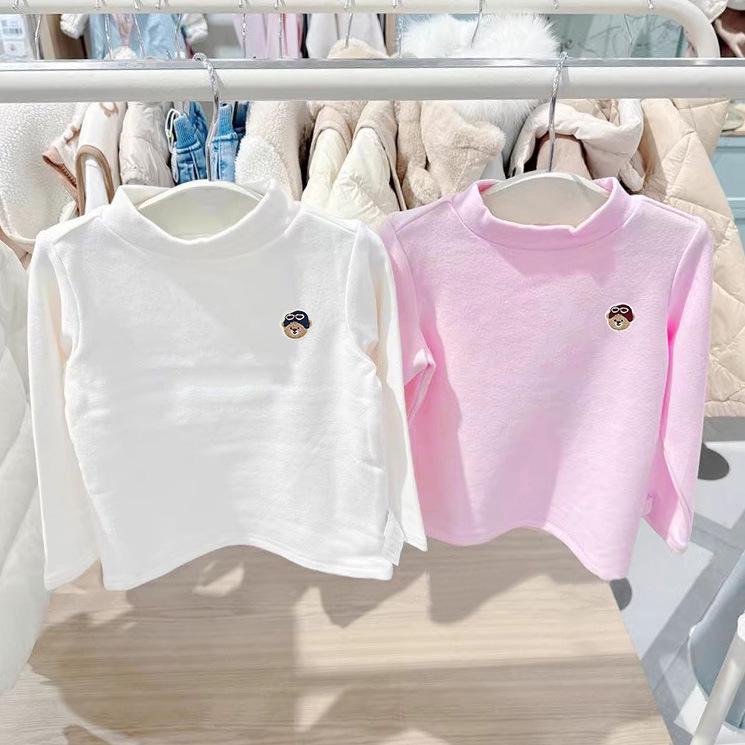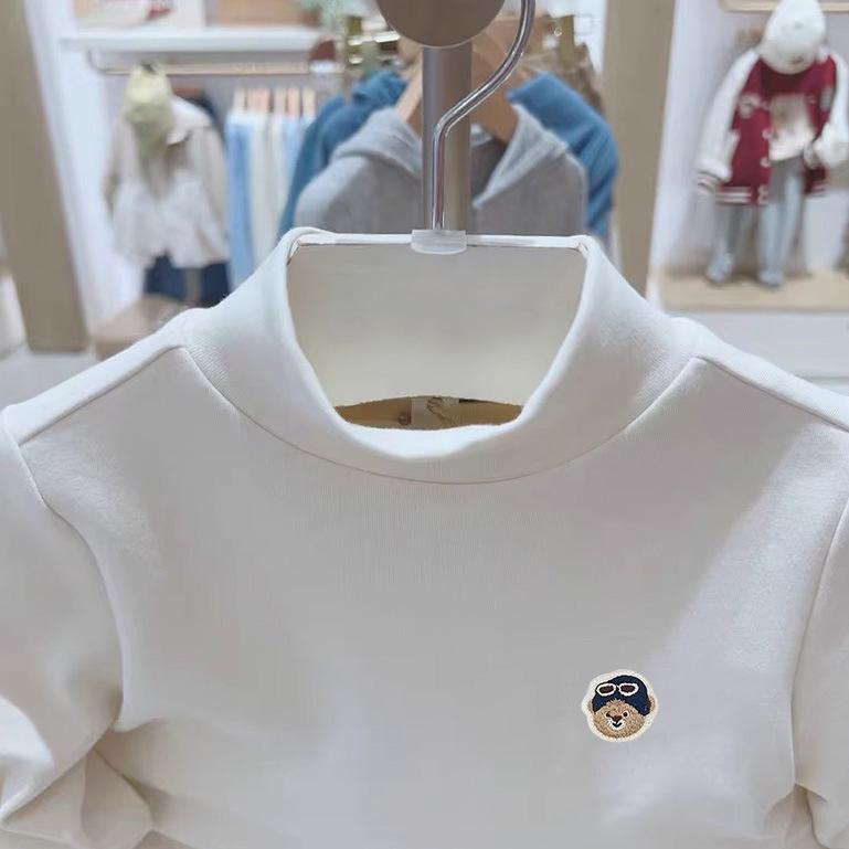 Детская хлопковая футболка с длинным рукавом - Корейский стиль, Полувысокий воротник, Весенне-осенняя одежда