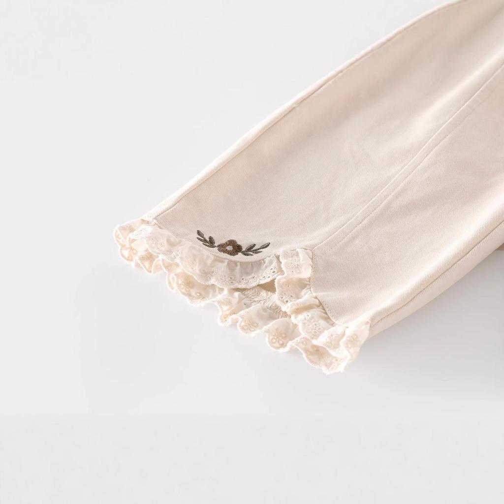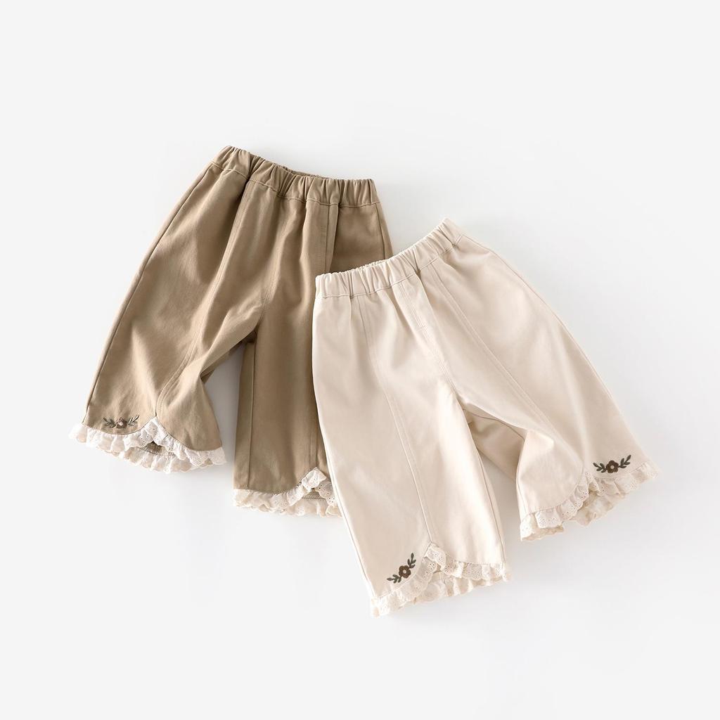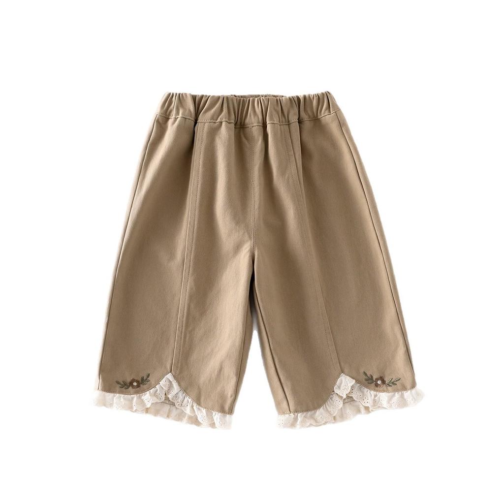 Брюки прямого кроя из кружева с вышивкой для девочек - 2025 корейский стиль осенние повседневные брюки