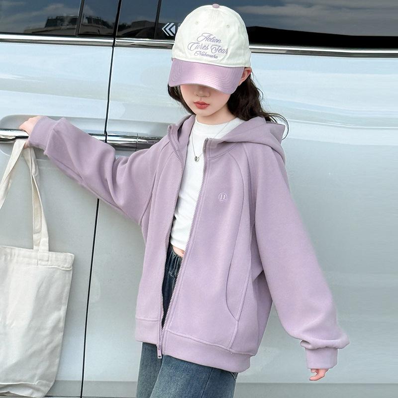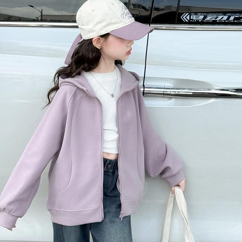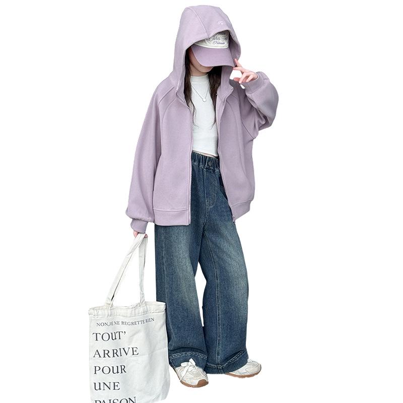 Модный спортивный комплект-двойка для девочек, осень 2025: Куртка с капюшоном и джинсы для детей