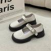 Французские туфли Мэри Джейн на высоком каблуке для женщин, Ретро, Пряжка на одной пуговице, Универсальный бантик, На толстой подошве, Кожаные туфли на массивном каблуке
