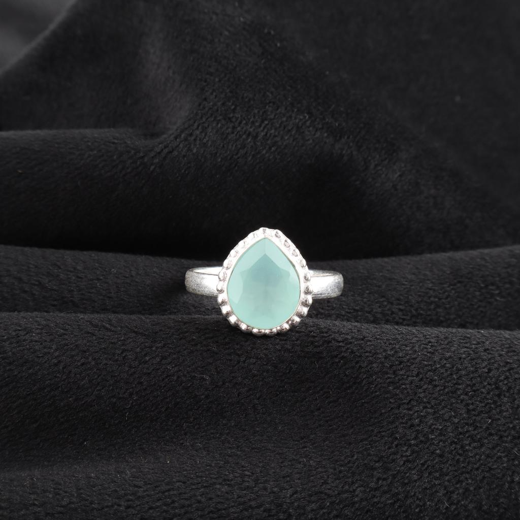 Аква Халцедон Драгоценный Камень 925 Стерлинговое Серебро Ювелирные Изделия Дизайнерское Кольцо Подарок для Жены
