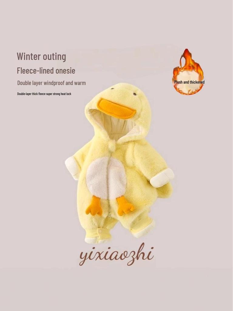 Унисекс Детский Зимний Плюшевый и Хлопковый 3D Ромпер с Уткой: Милая и уютная детская верхняя одежда
