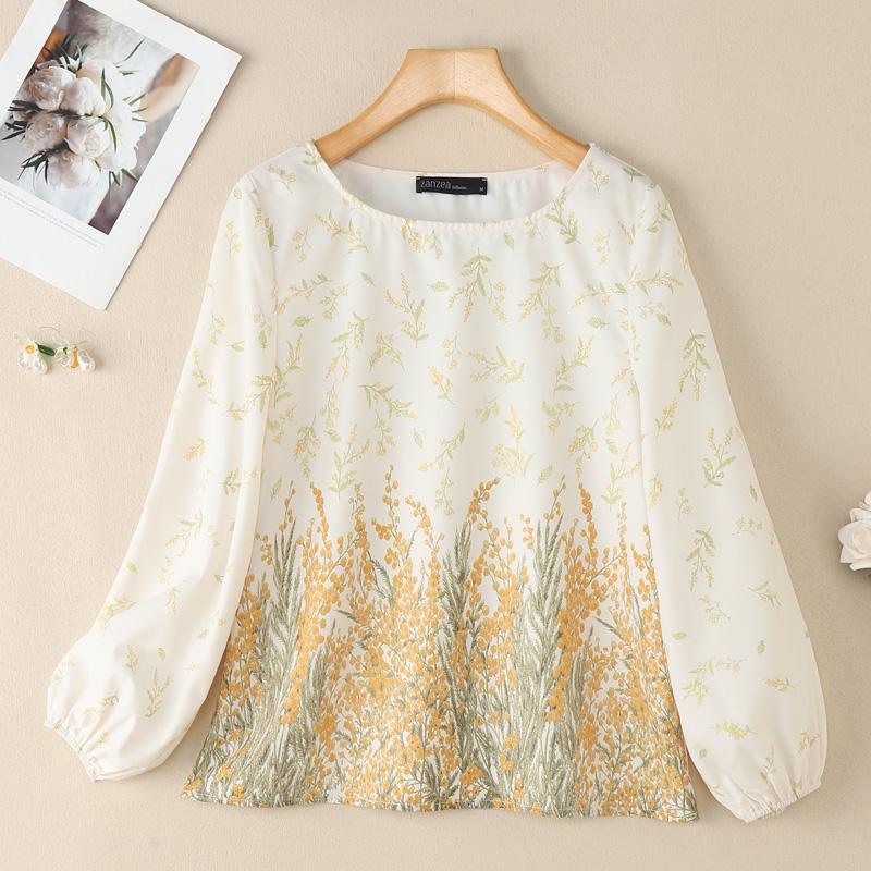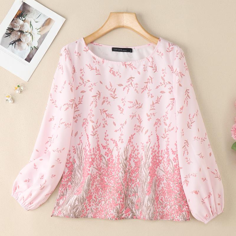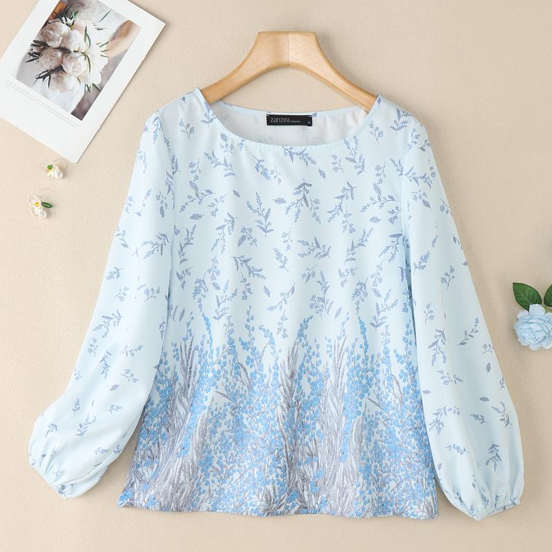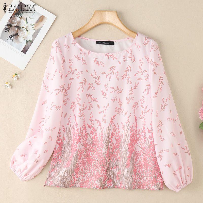 ZANZEA Женская повседневная блузка с круглым вырезом, свободного кроя, с длинным рукавом и принтом