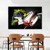 Плакаты и принты в виде стеклянных бутылок вина, картина на холсте, настенные художественные картины для столовой, домашний декор, деревянная бочка с виноградом, куадрос
