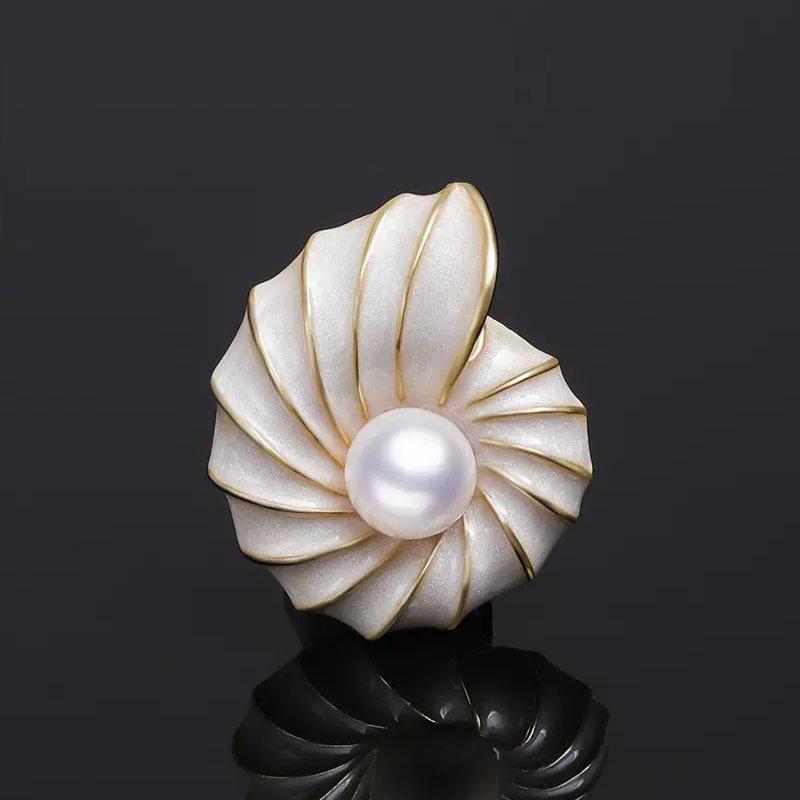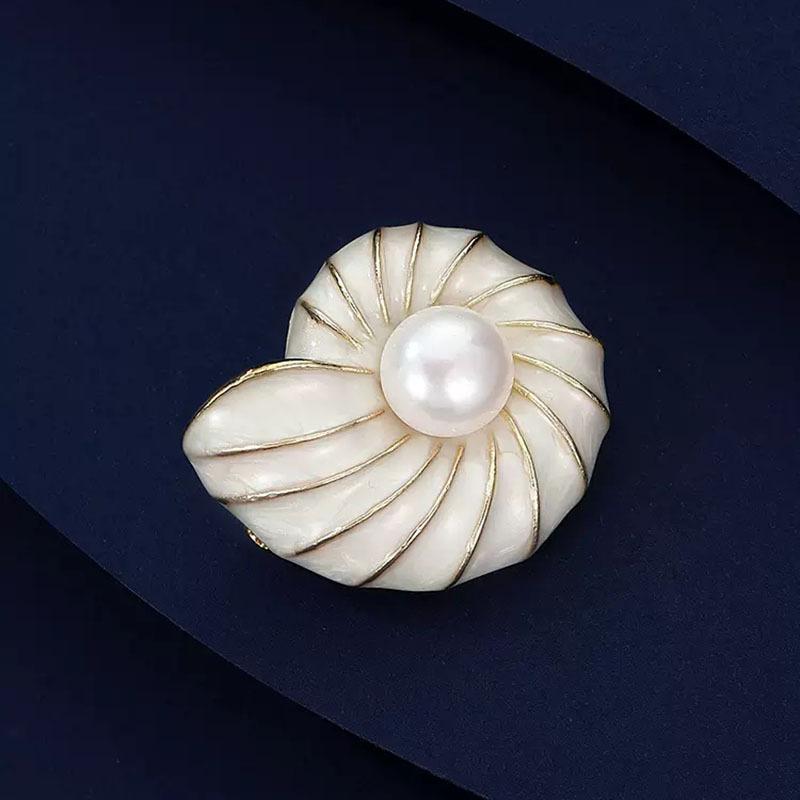 Изысканная брошь из жемчуга конк для женщин, креативный и нишевый дизайн, булавка для пальто в виде морского существа