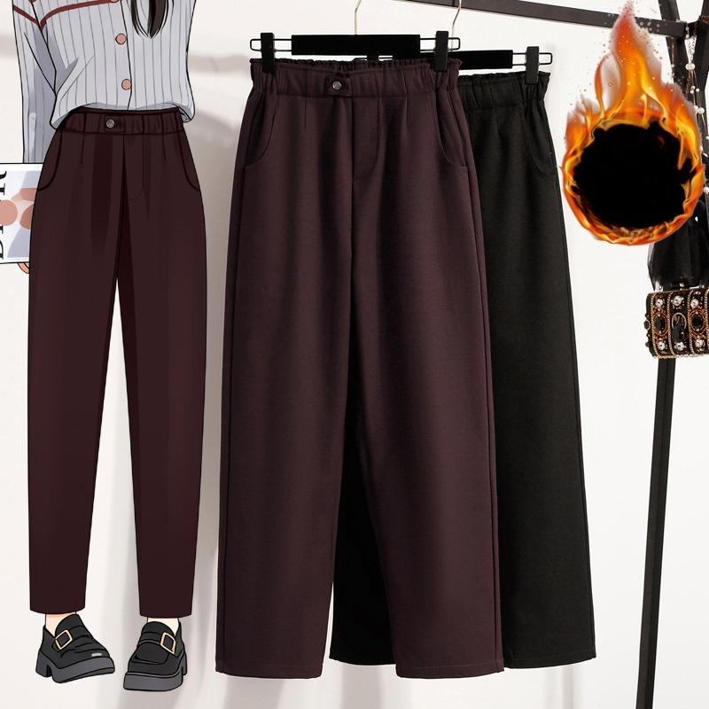 DIMANAF 2025 Осень Зима Женские Брюки Большого Размера Толстые Повседневные Женские Длинные Брюки Флок Оверсайз Свободные Низы