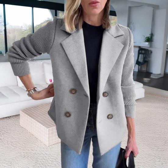 Женское двубортное шерстяное пальто-бушлат с лацканами с вырезом, трикотажной резинкой, длинными рукавами, короткий пиджак-блейзер, осенняя верхняя одежда — купить товар онлайн с бесплатной доставкой по всему миру!