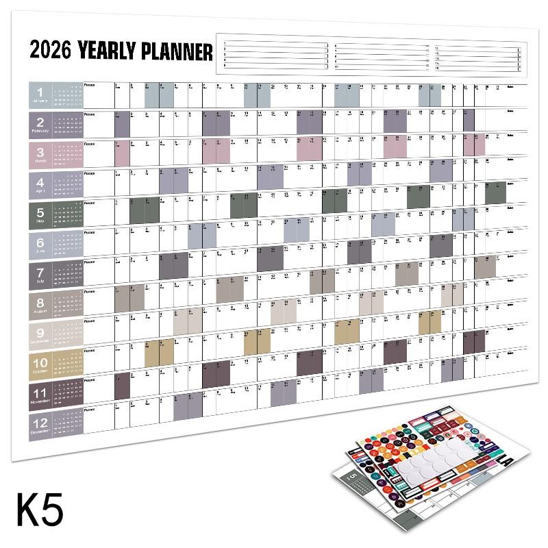 2026 Годовой настенный календарь-постер с наклейками Большой планировщик Расписание Организация дома и офиса Инструмент для управления временем Расписание