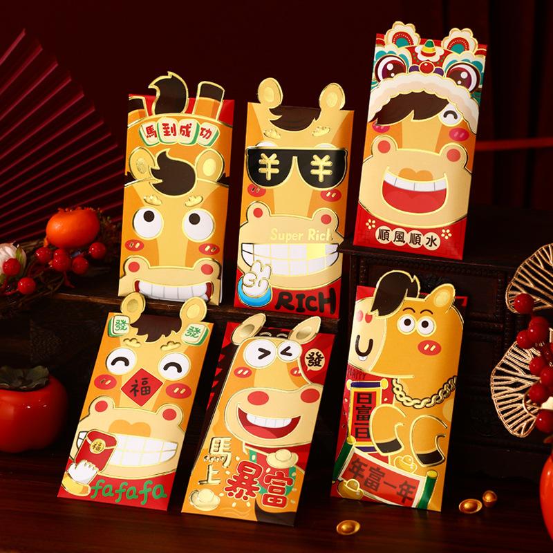 6 шт. Красные конверты Год Лошади 2026 Мешочек для денег на удачу Праздник Весны Карман с благословениями Красный пакет Украшение года Подарок