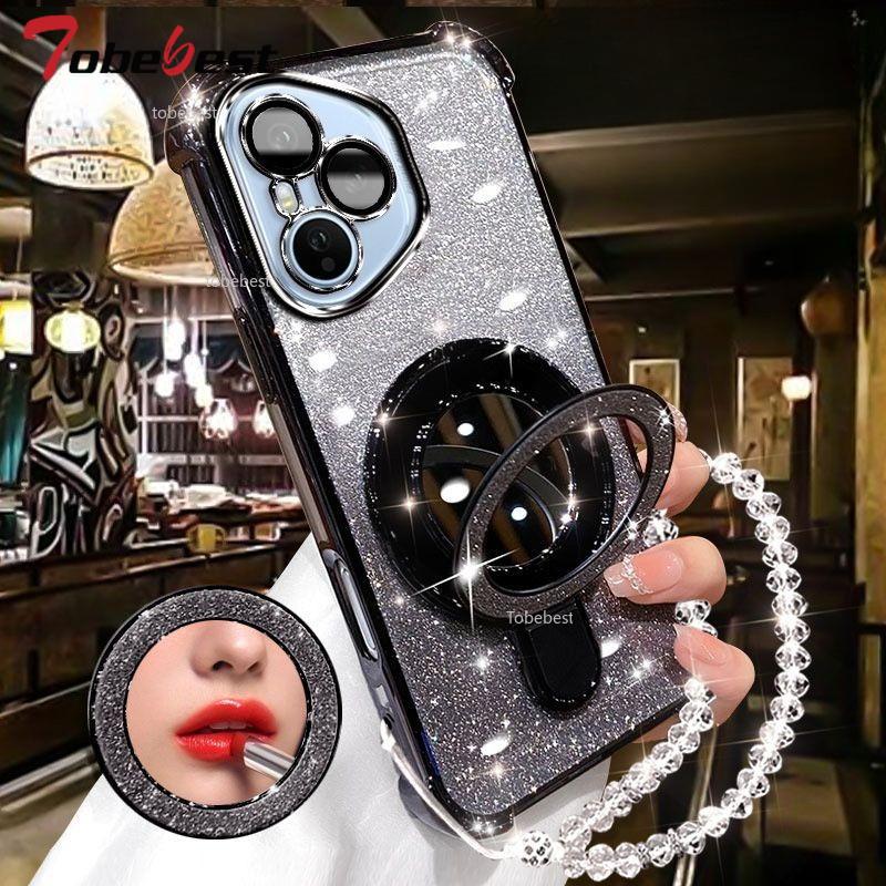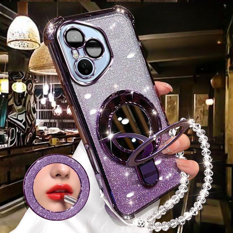 Для Huawei Honor 400 Lite 300 Ultra 200 100 90 Pro Чехол Блестящее покрытие Зеркало для макияжа Магнитный держатель для телефона Браслет Крышка