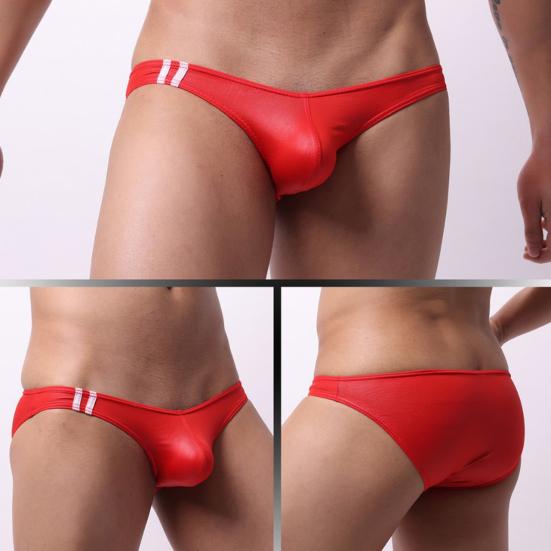 Представляем наши мужские трусы-слипы, изготовленные из смеси полиэстера и нейлона для максимального комфорта и мягкости.. Дизайн из искусственной кожи добавляет этим элегантным трусам нотку блеска и текстуры.