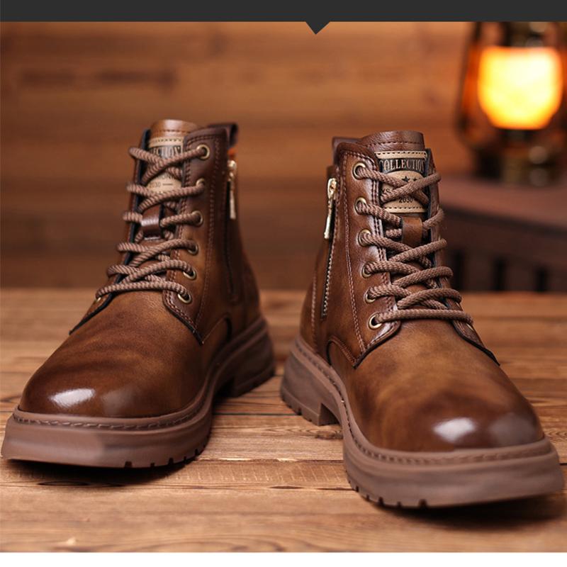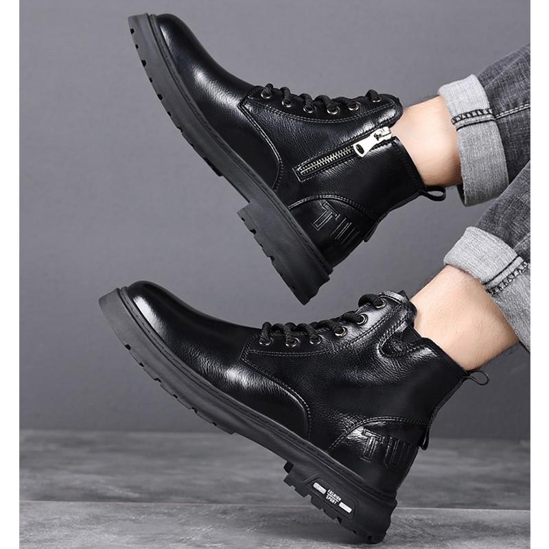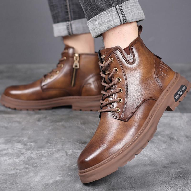 Осень Ранняя Зима Обувь из Натуральной Кожи Мужская Мода Одинарные Ботинки Бренд Мужские Ботильоны Черный Коричневый Нескользящая Толстая Подошва
