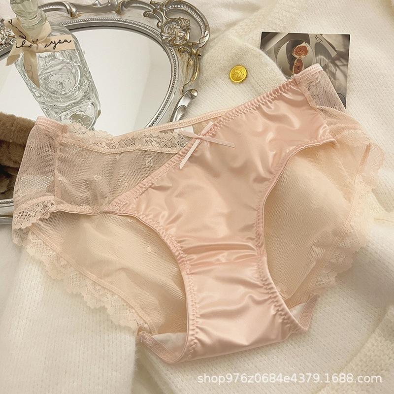 Сатиновые трусики-треугольники кремового цвета в нишевом стиле, сексуальные, с чистым кружевом, ластовица из чистого хлопка, с низкой посадкой, женское нижнее белье