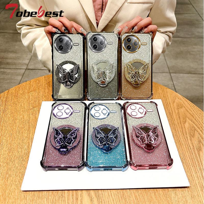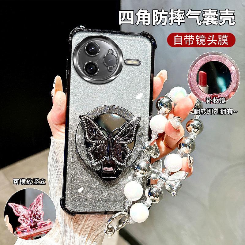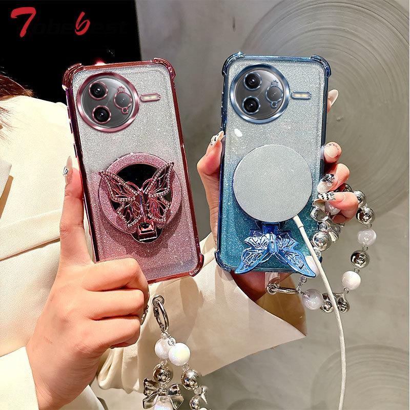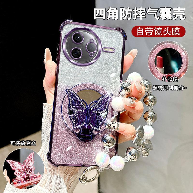 Блестящий Противоударный Чехол-Браслет Зеркало Бабочка с Гальваническим Покрытием для Xiaomi POCO F7 Ultra M7 Pro Силиконовая Накладка