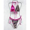 Леопардовый купальник бикини халтер из сатина с вставками, женский купальник, женский купальный костюм, комплект бикини из двух частей, купальник для купания