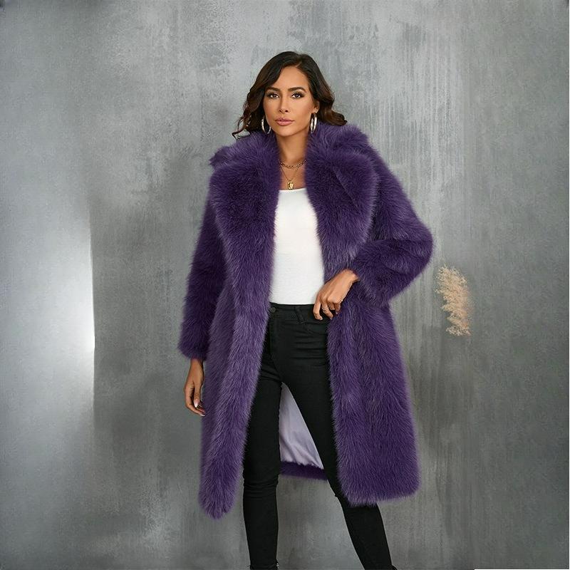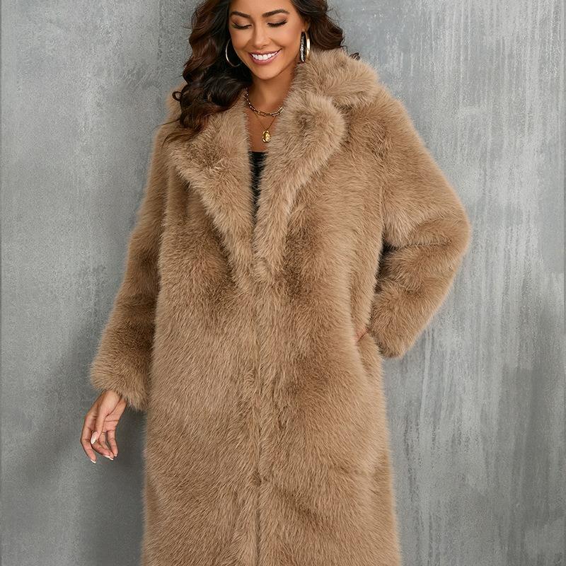 Пальто из искусственного меха Осень и Зима Средней длины Теплое Пальто с воротником-стойкой из искусственного меха