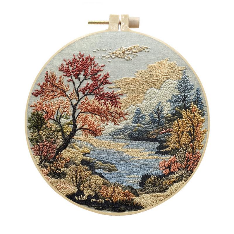 1 шт. Набор для вышивания осенне-зимнего лесного пейзажа, сделай сам, из ткани, с инструментами