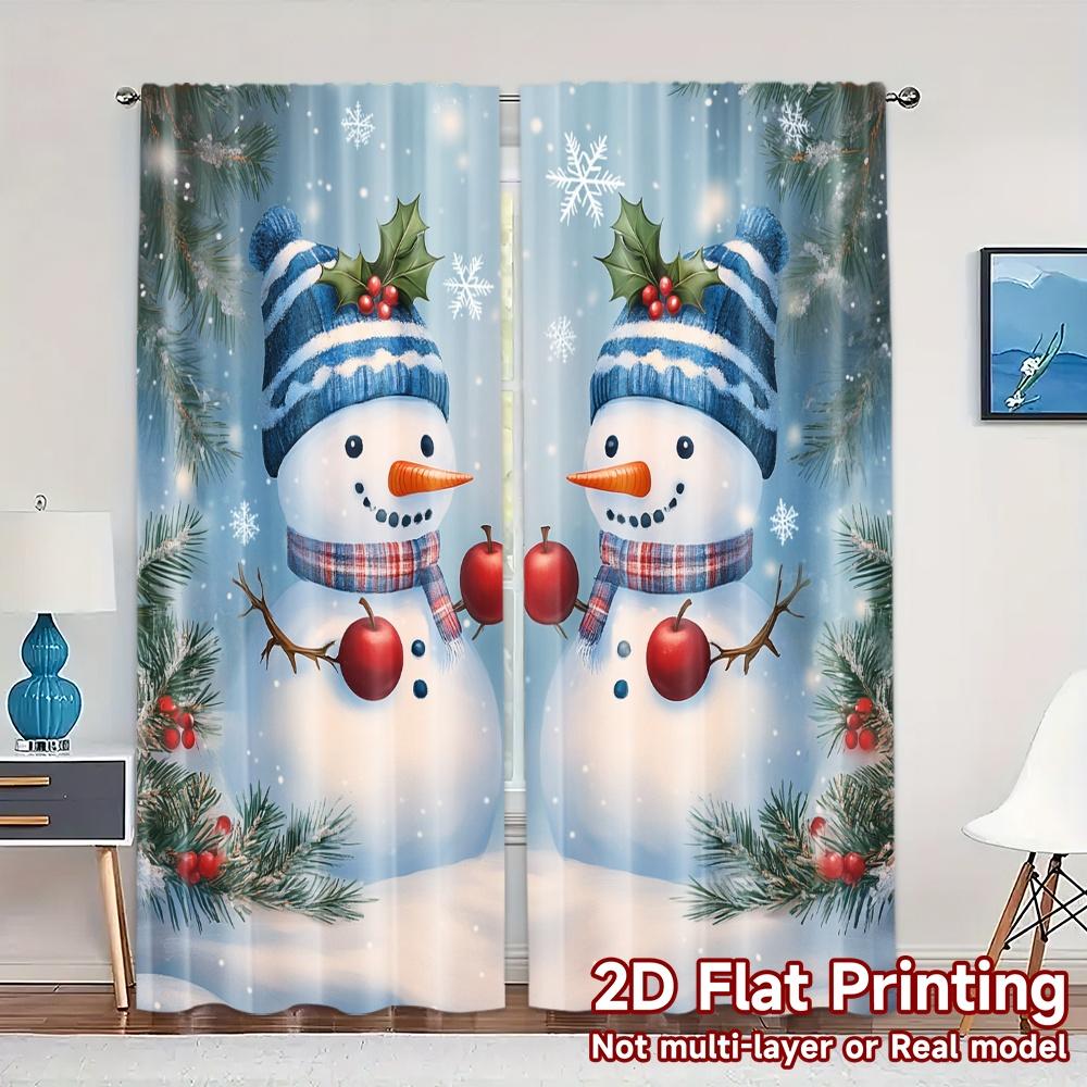 2 шт., Шторы Милые снеговики Рождественская сцена (2) Модные современные шторы 100% полиэстер шторы Арт-деко Праздничные Идеально для