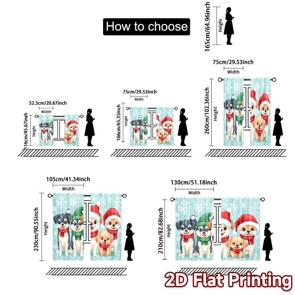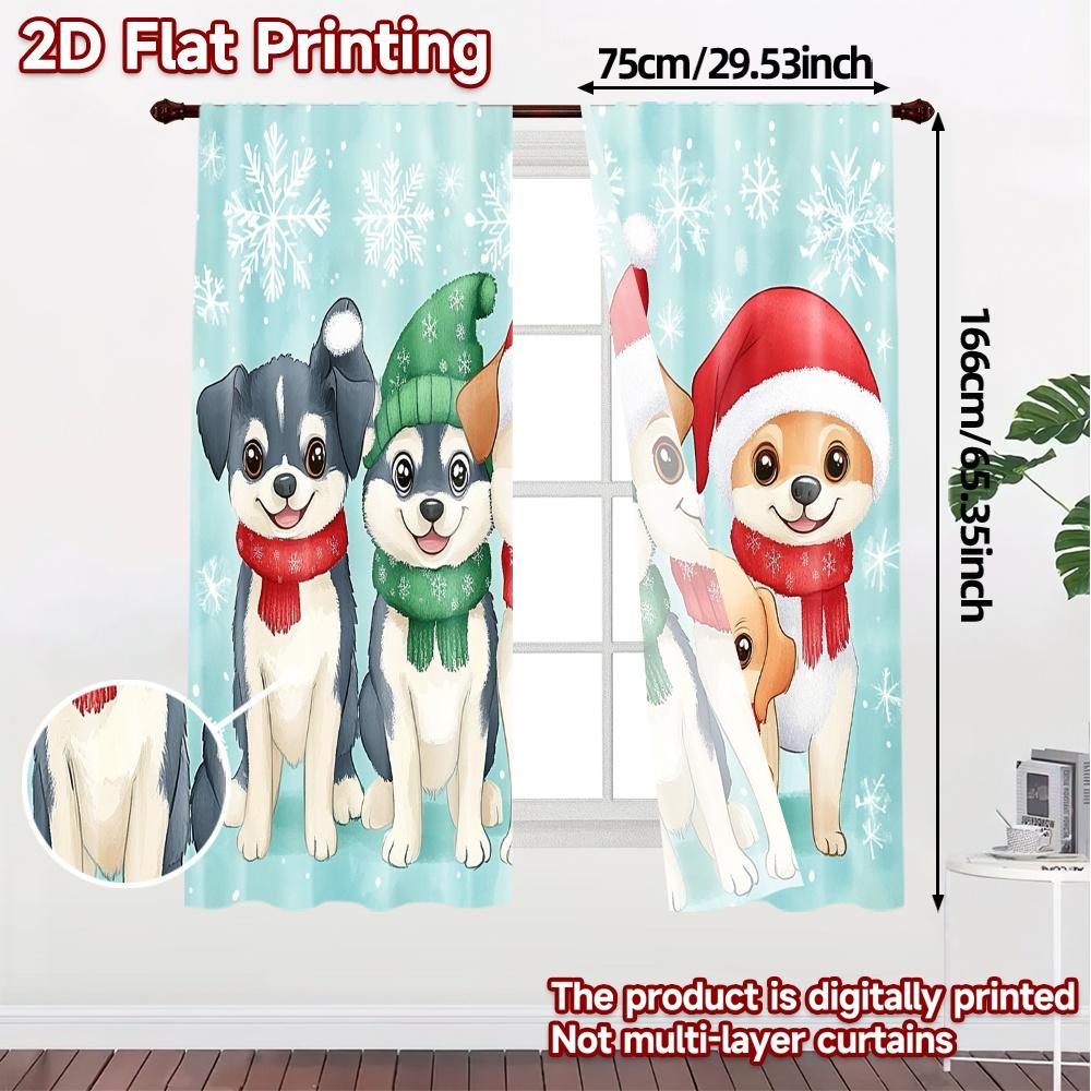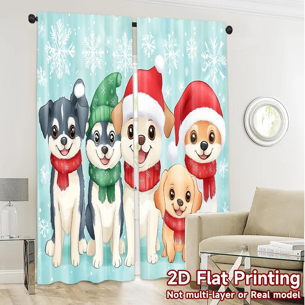 2pcs,Curtains Cute Christmas Puppies Snowflakes Festive Chic Curtain Cloth Prints Light Filtering Curtains Thermal Insulation,